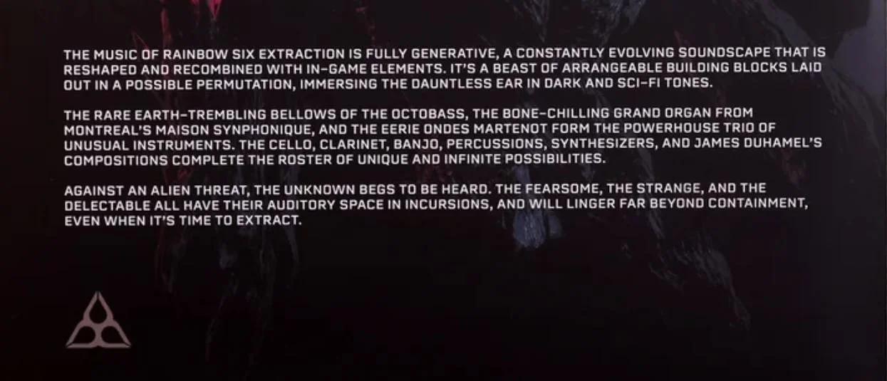 Linda wrote the descriptive text on the inside of the slipcase for the Rainbow Six Extraction OST double vinyl.